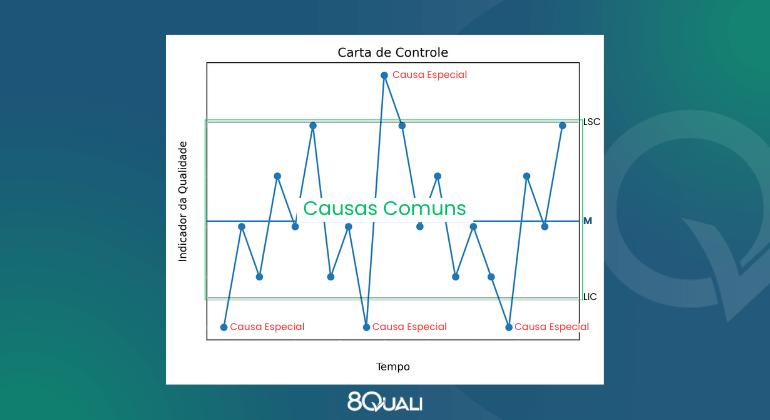 Abaixo, exemplifiquei as Causas Comuns em verde e as Causas Especiais em vermelho. Se liga: